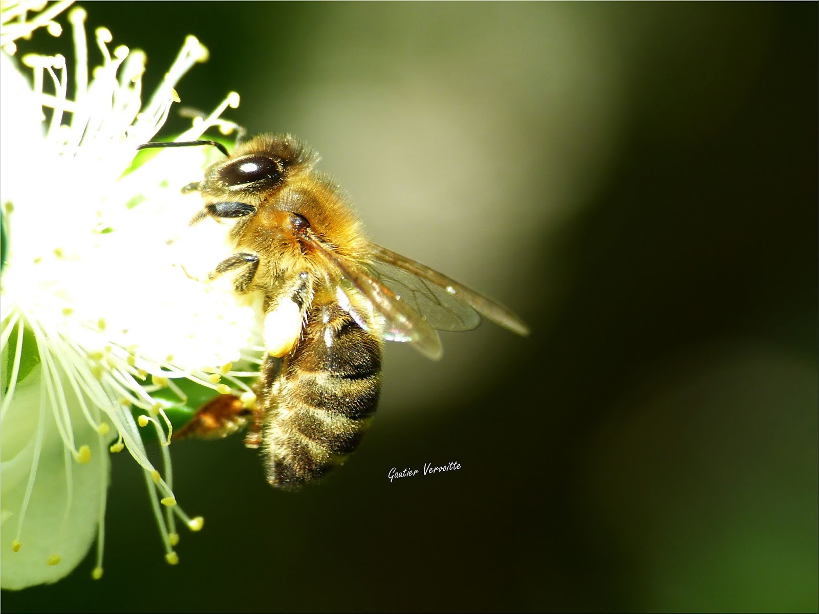 Précieuse Abeille à miel butinant une fleur de myrte 2